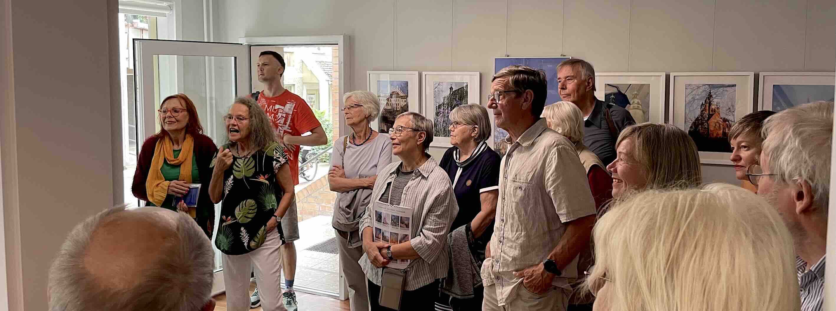 Mit einem sehr geselligen Nachmittag klang gestern die Ausstellung mit den "Traumstadt"-Fotografien von Angela Dolgner aus, die jetzt sieben Wochen in unserer Kleinen Galerie zu sehen war. Noch einmal haben sich zahlreiche Vereinsmitglieder, Freunde der Fotografin und Foto-Interessierte eingefunden, um mit Angela Dolgner über ihre fotografischen Arbeiten ins Gespräch zu kommen.