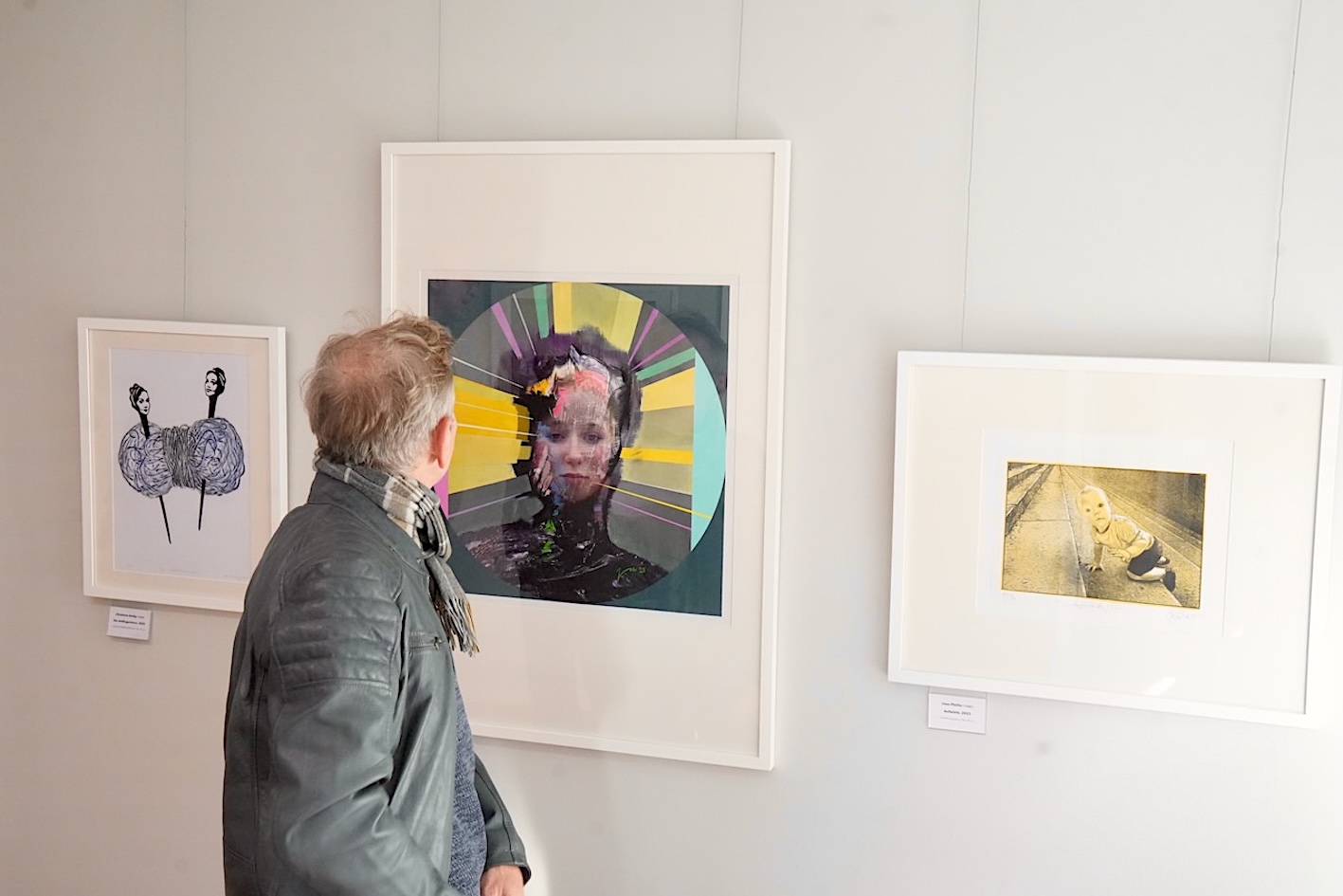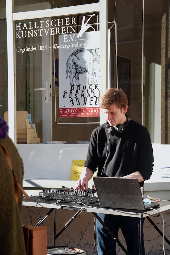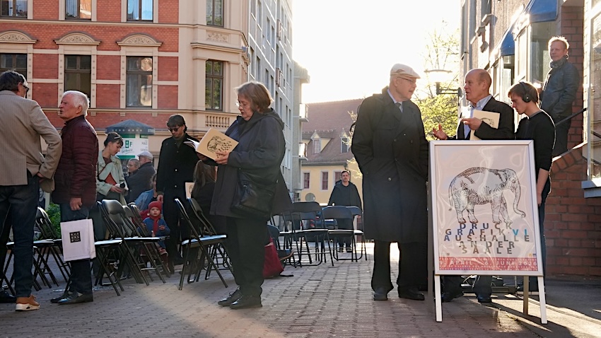 Begleitet von einem halleschen DJ wurde es ein wunderbarer Abend mit vielen tollen Gesprächen in der Galerie und in der Fußgängerzone davor, dem einen oder anderen Gläschen Wein und natürlich ausreichend Zeit, sich die ausgestellten Grafiken der ersten 31 Künstlerinnen und Künstler anzuschauen.