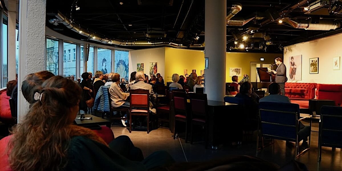Die Einführung in die Ausstellung erfolgte im Anschluss durch die Kuratorin Dr. Inés Brock-Harder vom Kunstverein. Musikalisch wurde die Ausstellungseröffnung vom Pianisten Alexander Stepanov begleitet.