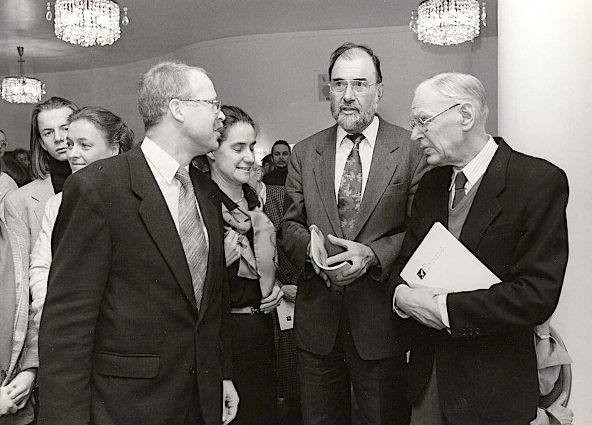 Kunstvereinsvorsitzender Hans-Georg Sehrt (li.) mit Oberbürgermeister Klaus Rauen und Werner Tübke (re.) bei der Ausstellungseröffnung – Fotos: Eberhard Garbe
