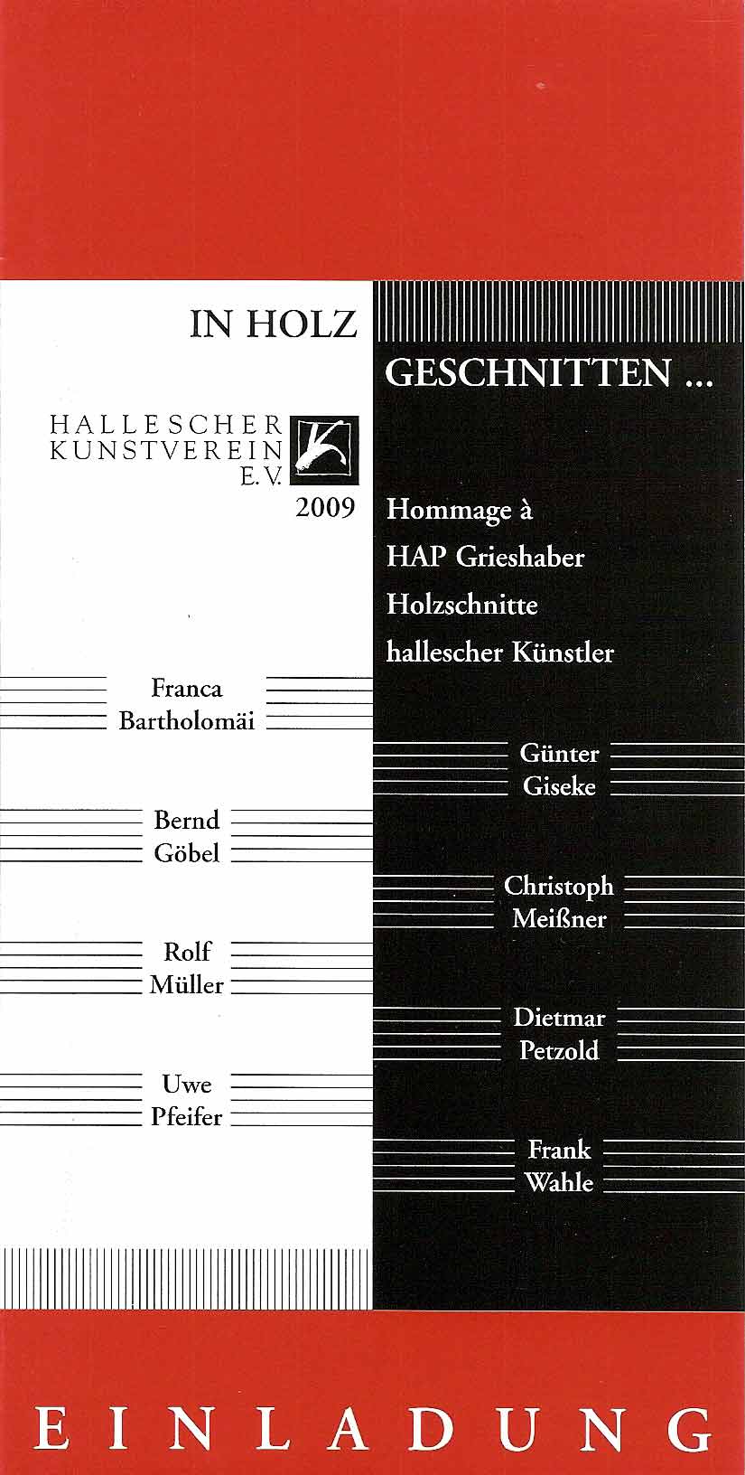Der Hallesche Kunstverein erinnert mit der Ausstellung „In Holz geschnitten ... Hommage à HAP Grieshaber“ an den für den Holzschnitt der 2. Hälfte des 20. Jahrhunderts und darüber hinaus maßgebenden engagierten Künstler. HAP Grieshaber wurde am 15. Februar 1909 in Rot an der Rot (Oberschwaben) geboren und starb am 12. Mai 1981 auf der Achalm bei Reutlingen.