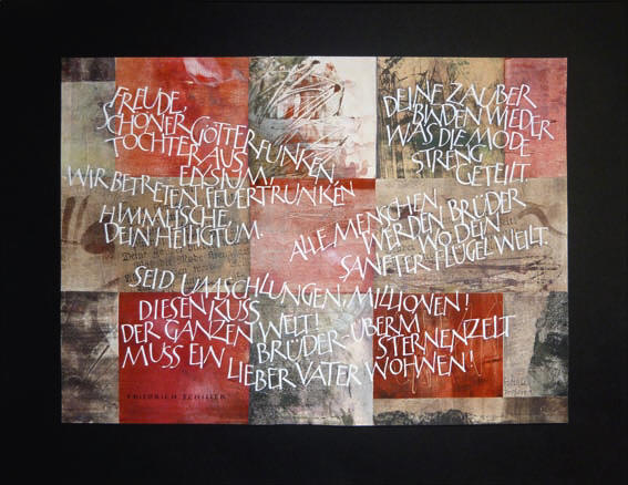 Doch daneben war es immer die Schrift, die sie fasziniert hat. Grundlage dafür war die Ausbildung an der Kunsthochschule Burg Giebichenstein und schließlich nach Jahren des Tätigseins als Gebrauchsgrafikerin dann ihre eigene Lehrtätigkeit an der „Burg“ seit 1980, geholt von dem fast ein halbes Jahrhundert mit großem Erfolg dort tätigen Schriftlehrer Günter Gnauck (1931-2004). Das „System Gnauck“ – so von ihr selbst bezeichnet – war für ihre Tätigkeit die wesentliche Grundlage, die sie im Laufe der Jahre ständig hin zum freieren Gestalten erweitert hat. So ist ihr heute die traditionelle Schriftgestaltung genauso wichtig wie das fantasievolle Kalligrafische.