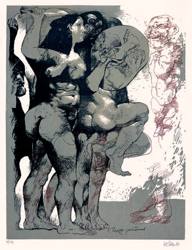 Willi Sitte: Picasso gewidmet. 1980. Farbzinkografie. 82,3 x 57,3 cm