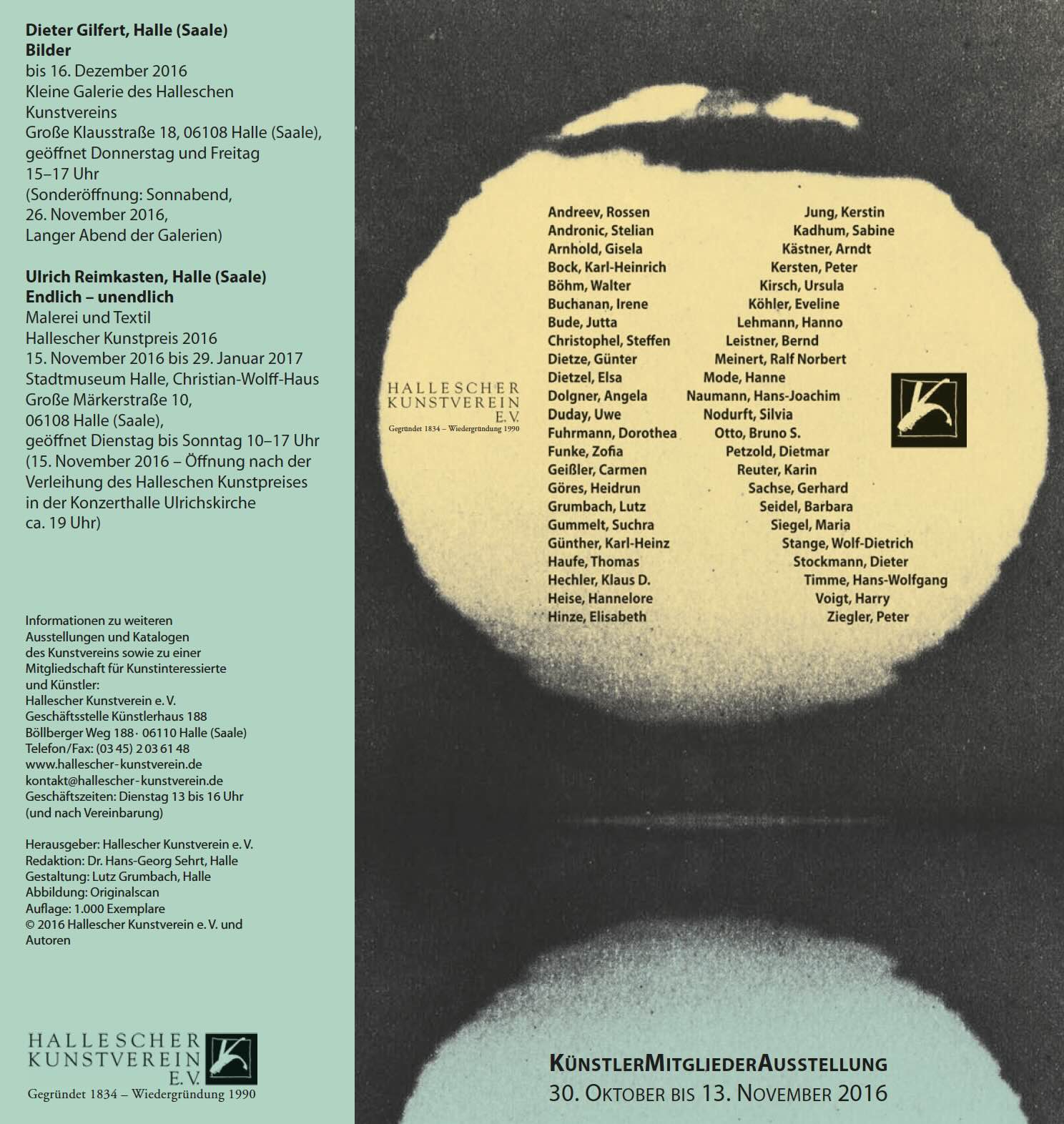 Da die verschiedenen bildkünstlerischen Bereiche genauso wie in einigen Fällen das Kunsthandwerk vertreten sind, ergibt sich eine vielgestaltige und für das Können wie auch die Fantasie der Ausstellenden stehende Schau. Dabei sei besonders auch eine Besonderheit hervorgehoben, der alle Jahres-Mitglieder-Ausstellungen des Halleschen Kunstvereins auch bisher verpflichtet waren: In dieser Ausstellung stellen professionell tätige Künstler ohne Vorbehalte zusammen mit als Laien wirkenden Künstlern aus. Das verlangt von beiden Seiten