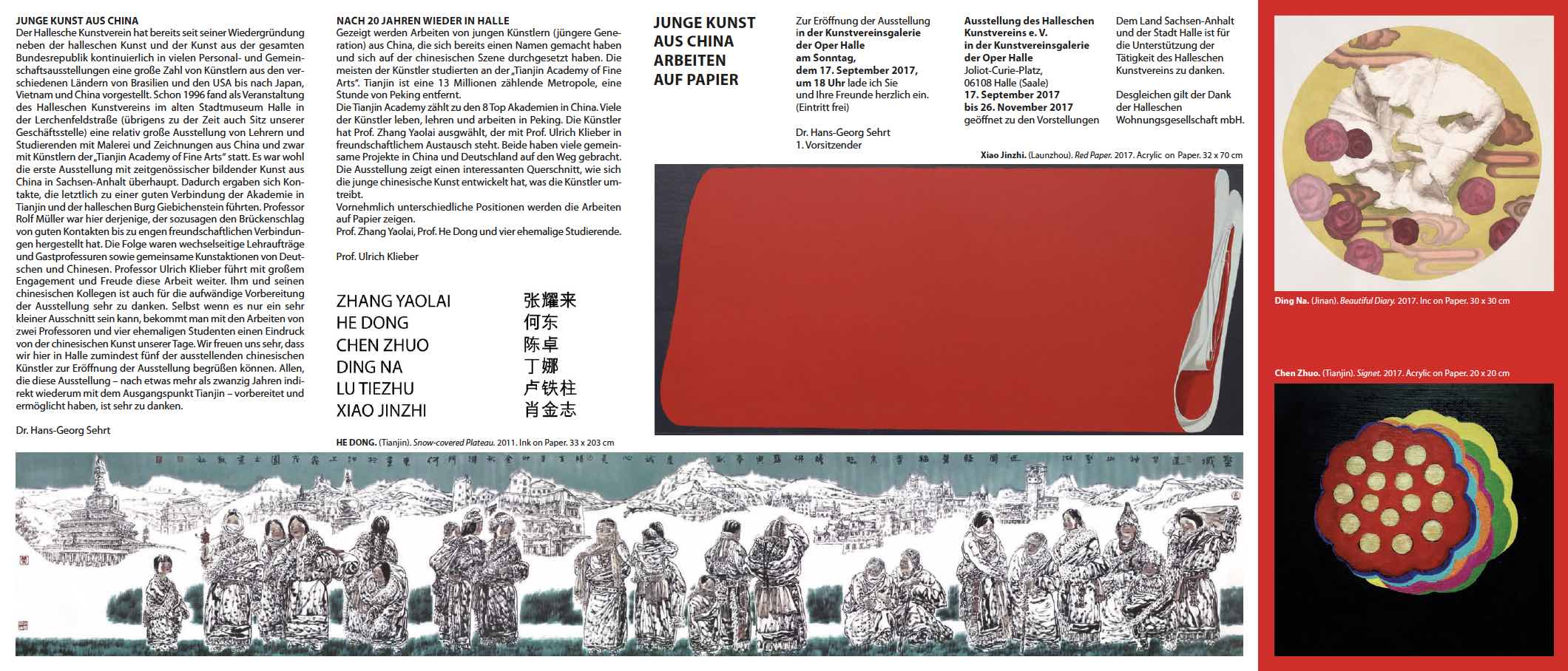 Der Hallesche Kunstverein hat bereits seit seiner Wiedergründung neben der halleschen Kunst und der Kunst aus der gesamten Bundesrepublik kontinuierlich in vielen Personal- und Gemeinschaftsausstellungen eine große Zahl von Künstlern aus den verschiedenen Ländern von Brasilien und den USA bis nach Japan, Vietnam und China vorgestellt. Schon 1996 fand als Veranstaltung des Halleschen Kunstvereins im alten Stadtmuseum Halle in der Lerchenfeldstraße eine relativ große Ausstellung von Lehrern und Studierenden mit Malerei und Zeichnungen aus China und zwar mit Künstlern der „Tianjin Academy of Fine Arts“ statt.