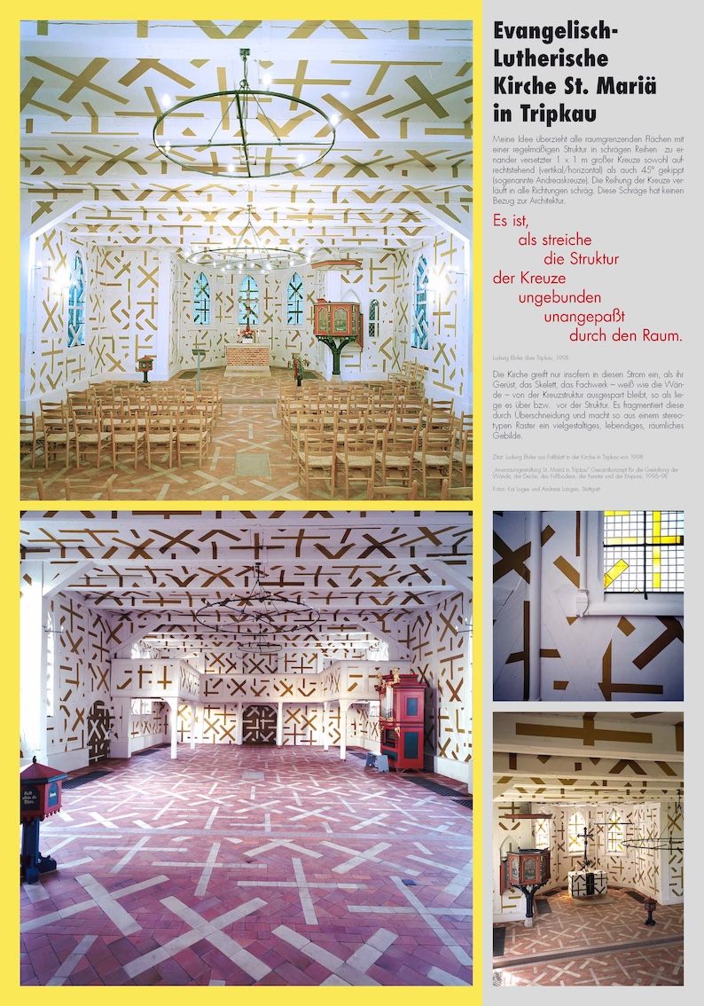 So lautete der Titel seiner großen Personalausstellung im Kunstmuseum Moritzburg Halle 1996 auch ganz begründet und folgerichtig „Verschiebungen“. Dabei war es bei ihm oft die Komplexität von fantasievoll freier Erfindung und dem regulierendem Systematischen. In seine gestalterischen Arbeiten für große Ausstellungen und Museen – vielfach gemeinsam mit seinem Freund und Kollegen Lutz Grumbach –, aber auch für ganz besondere Objekte wie u. a. den Raum der Stille im Universitätsklinikum Halle-Kröllwitz oder der Kirche St. Mariä in Tripkau kam dazu die geistige Dimension.