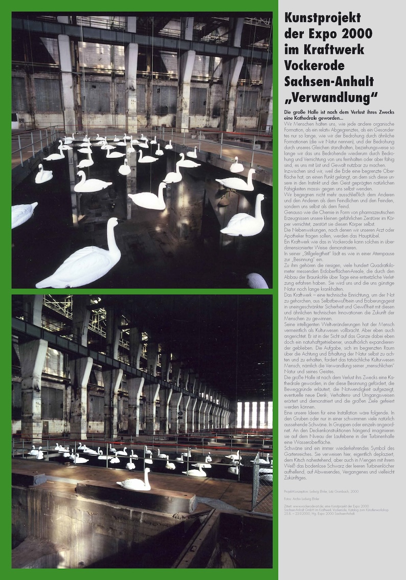 Ein Beispiel für eine im ersten Moment eigenwillig wirkende und für unkonventionelles Denken stehende Kunstaktion Ludwig Ehrlers, die aber für den Betrachter ein ganz überraschendes Verhältnis von Bild- und Raumwahrnehmung bedeutete, war sein Beitrag zur Ausstellung 1996 „Verlängerte Frohe Zukunft“ in Form eines riesigen Sonnenblumenfeldes – natürlich Kunstblumen – auf dem inneren Dach der zum Zeitpunkt der Ausstellung noch vollständigen Westruine der Moritzburg Halle.