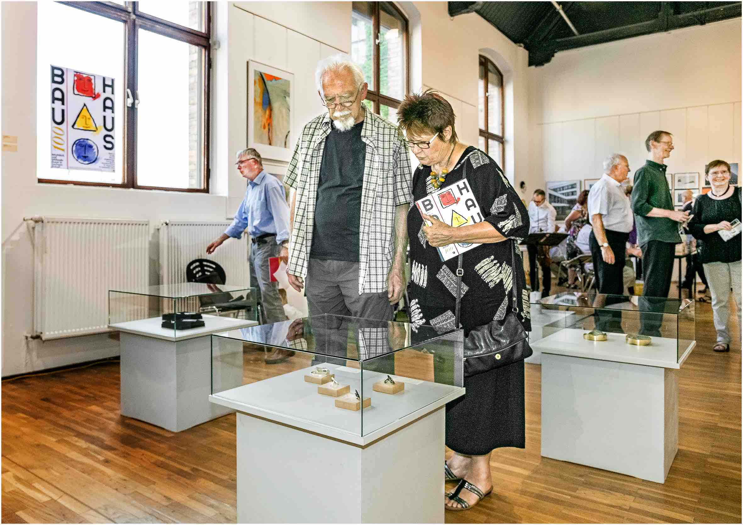 Gezeigt werden von 69 heute tätigen Künstlerinnen und Künstlern aus Sachsen-Anhalt rund 100 bildkünstlerische Werke, die in einem gewissen Bezug zu den Prämissen des Bauhauses stehen. Die große Resonanz auf die Ausschreibung mit der bewussten Einbeziehung von professionell tätigen Künstlern und Studierenden sowie auch von Laienkünstlern hat zu einer sehr vielgestaltigen und fantasievollen Ausstellung unter Einbeziehung von Malerei, Grafik, Plastiken einschließlich Medaillen, Plakaten, Fotoarbeiten und Kunsthandwerk geführt.
