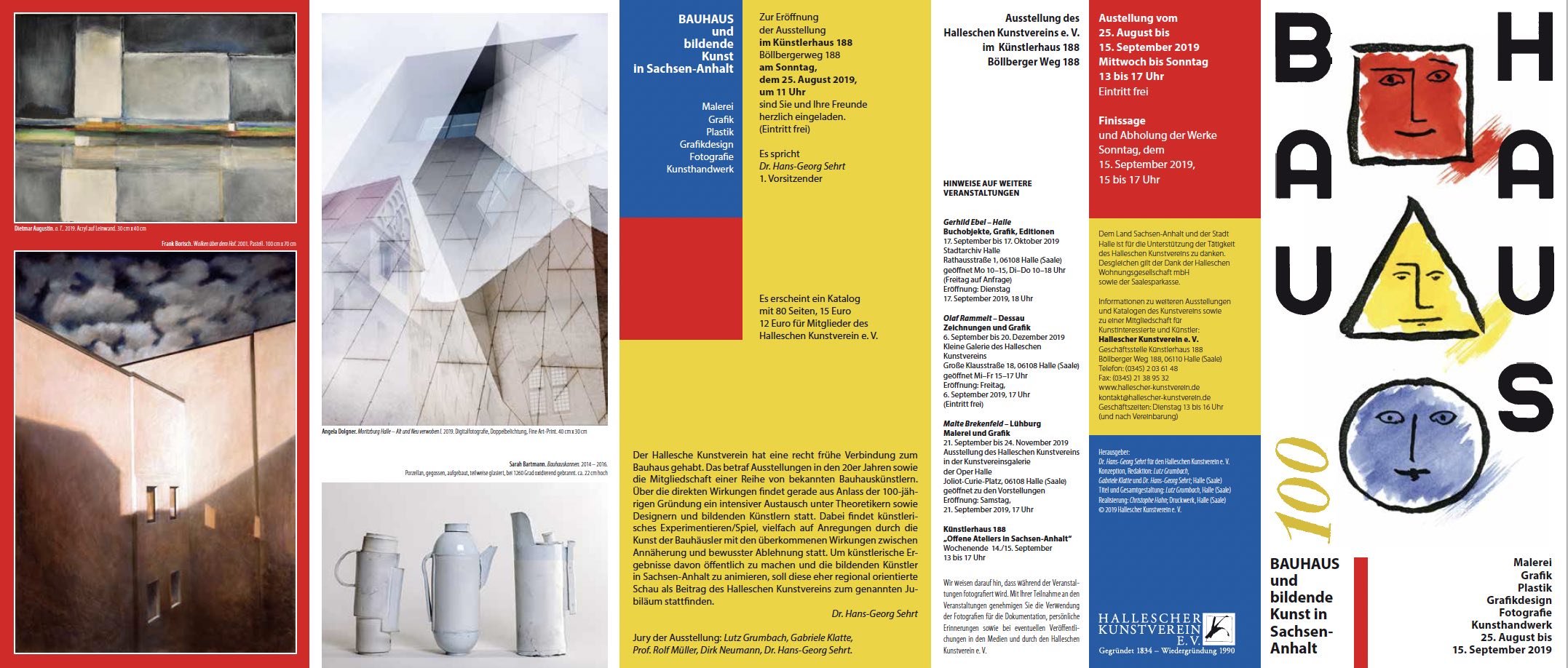 Der Hallesche Kunstverein reiht sich mit seiner neuen Ausstellung in die dem 100-jährigen BAUHAUS gewidmeten Ausstellungen unter einem besonderen Aspekt ein. Während die großen Bauhaus-Ausstellungen in diesem Jubiläumsjahr – einschließlich weitgehend auch der neuen Museen – dem ursprünglichen Bauhaus und den mit ihm verbundenen Künstlern verpflichtet sind, begegnet man hier keinem der Bauhausmeister oder -schüler.
