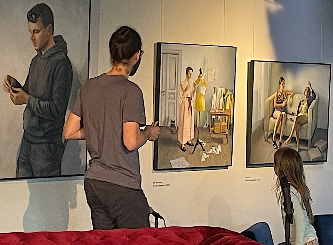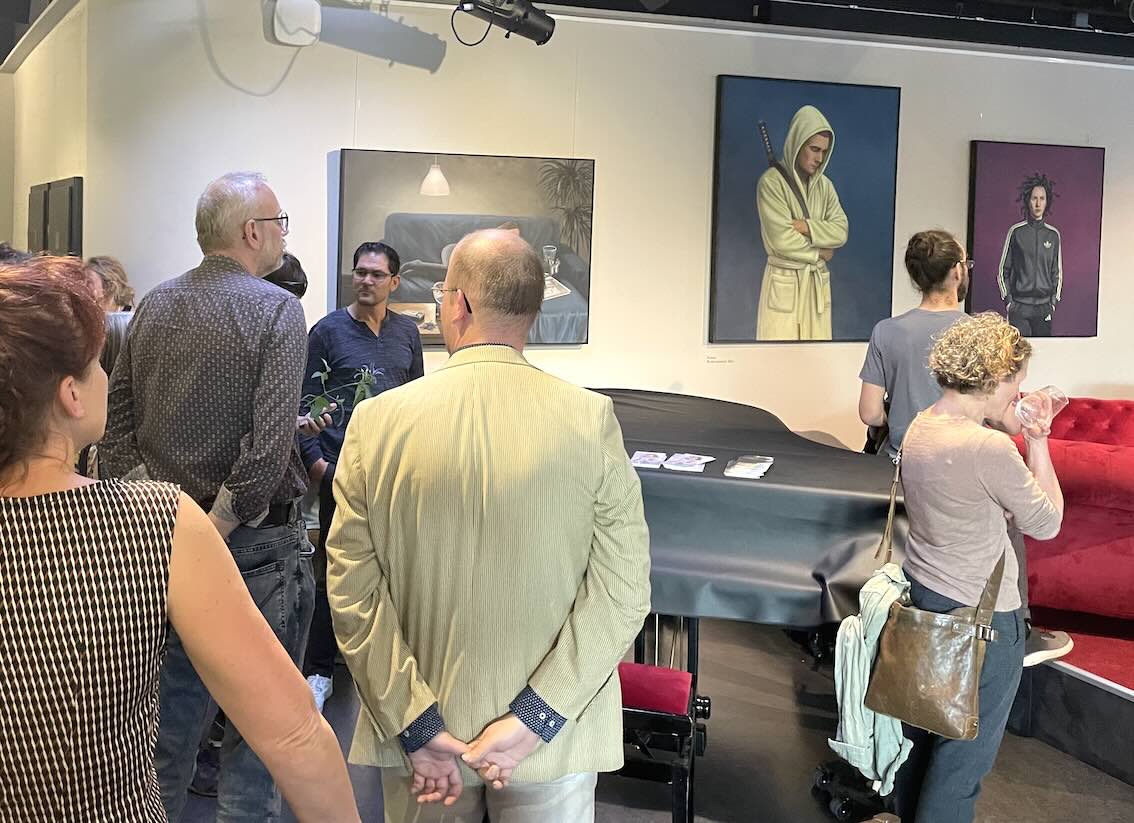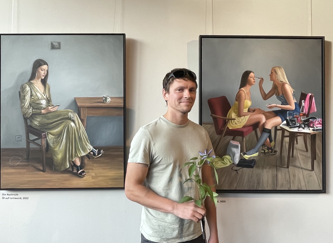 Sebastian Friedrich zeigt Menschen, die sich inszenieren – nicht aus Eitelkeit, sondern als bewussten Ausdruck von Haltung, Stil und Gegenwart. Seine Figuren treten auf wie auf einer Bühne: selbstbewusst, konzentriert, inmitten alltäglicher, oft intimer Szenen. „Mich interessiert der Moment, in dem jemand ganz bei sich zu sein scheinen“, sagt Friedrich. Seine Malerei verbindet klassische Technik mit einem zeitgenössischen Blick und offenbart eine subtile Theatralik des Alltags.