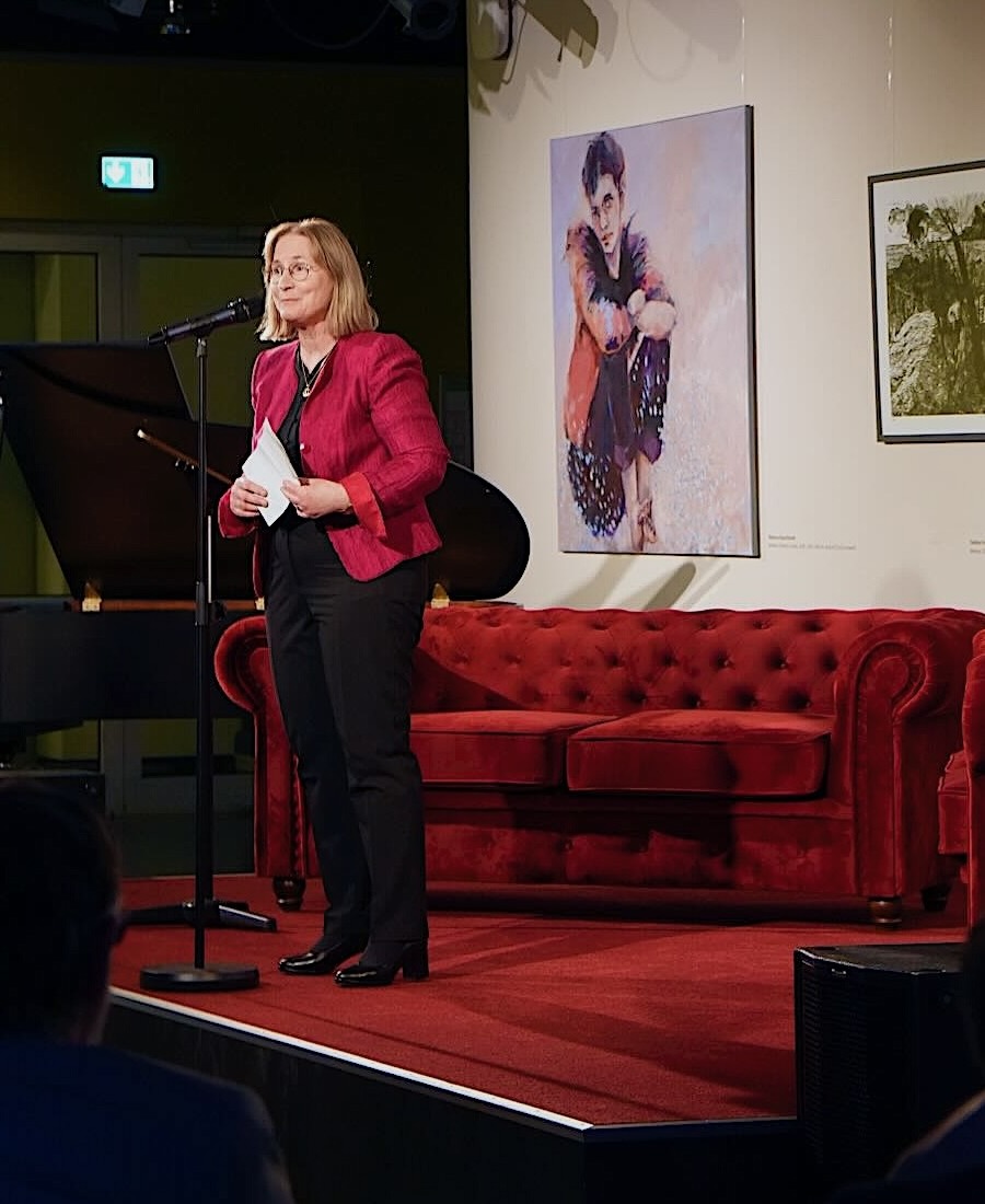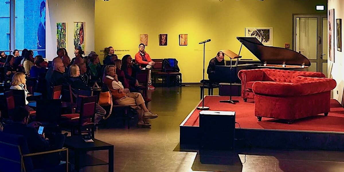 Die Einführung in die Ausstellung erfolgte im Anschluss durch die Kuratorin Dr. Inés Brock-Harder vom Kunstverein. Musikalisch wurde die Ausstellungseröffnung vom Pianisten Alexander Stepanov begleitet.