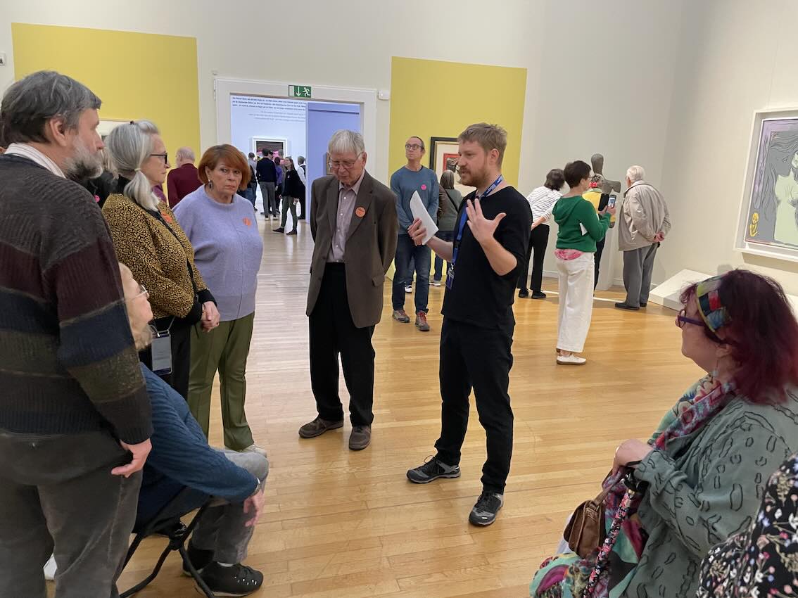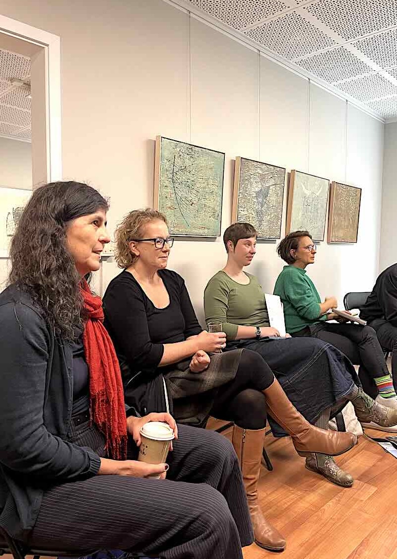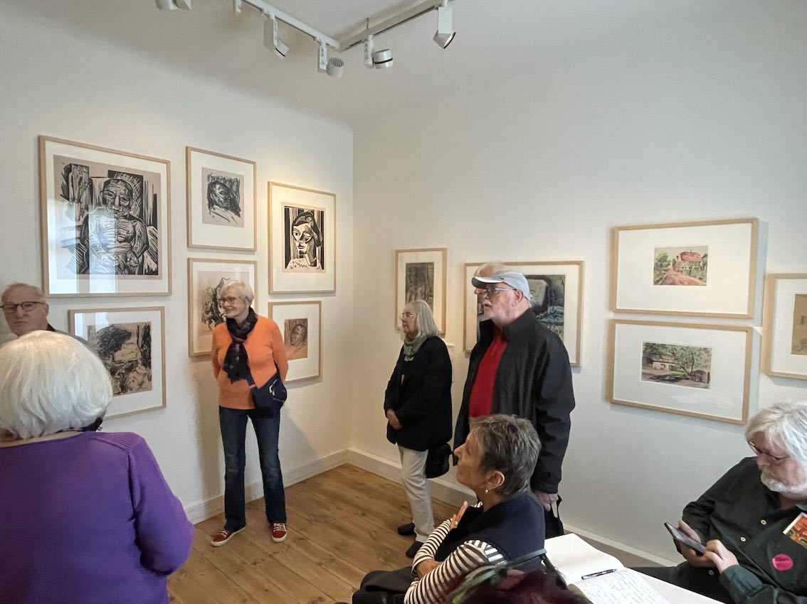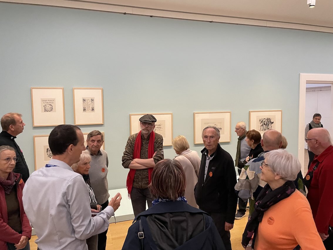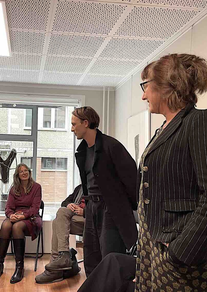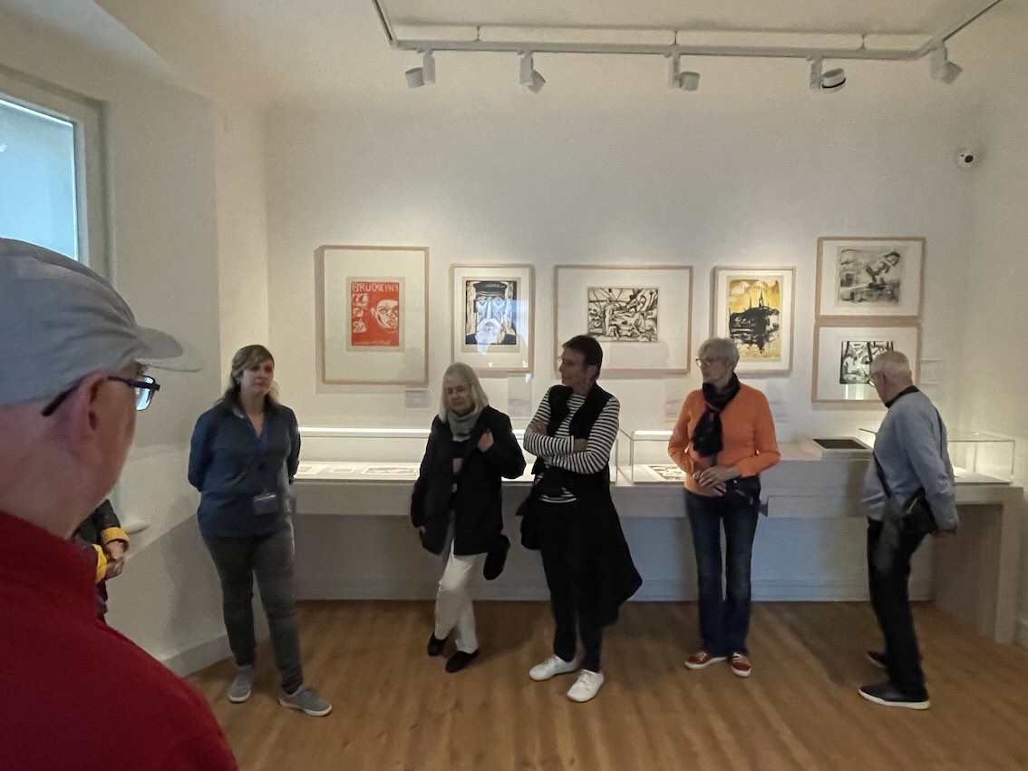 Auf Einladung der IG Bildende Kunst, wo der Hallesche Kunstverein Mitglied ist, waren gestern Stadträte aus dem Kulturausschuss – so die Vorsitzende Prof. Dr. Christine Fuhrmann und Mitglied Melanie Ranft – sowie sachkundige Bürgerinnen zu Gast bei uns in der Kleinen Galerie. Im Rahmen einer kleinen Tour durch Ausstellungsorte der freien Kulturszene hatten wir die Möglichkeit, uns und unser Ausstellungsprogramm einmal ausführlicher vorzustellen. Am vorletzten Tag des Personalausstellung von Timm Kregel waren dessen Bilder und Skulpturen dafür ein attraktiver Rahmen. (27.09.2025)