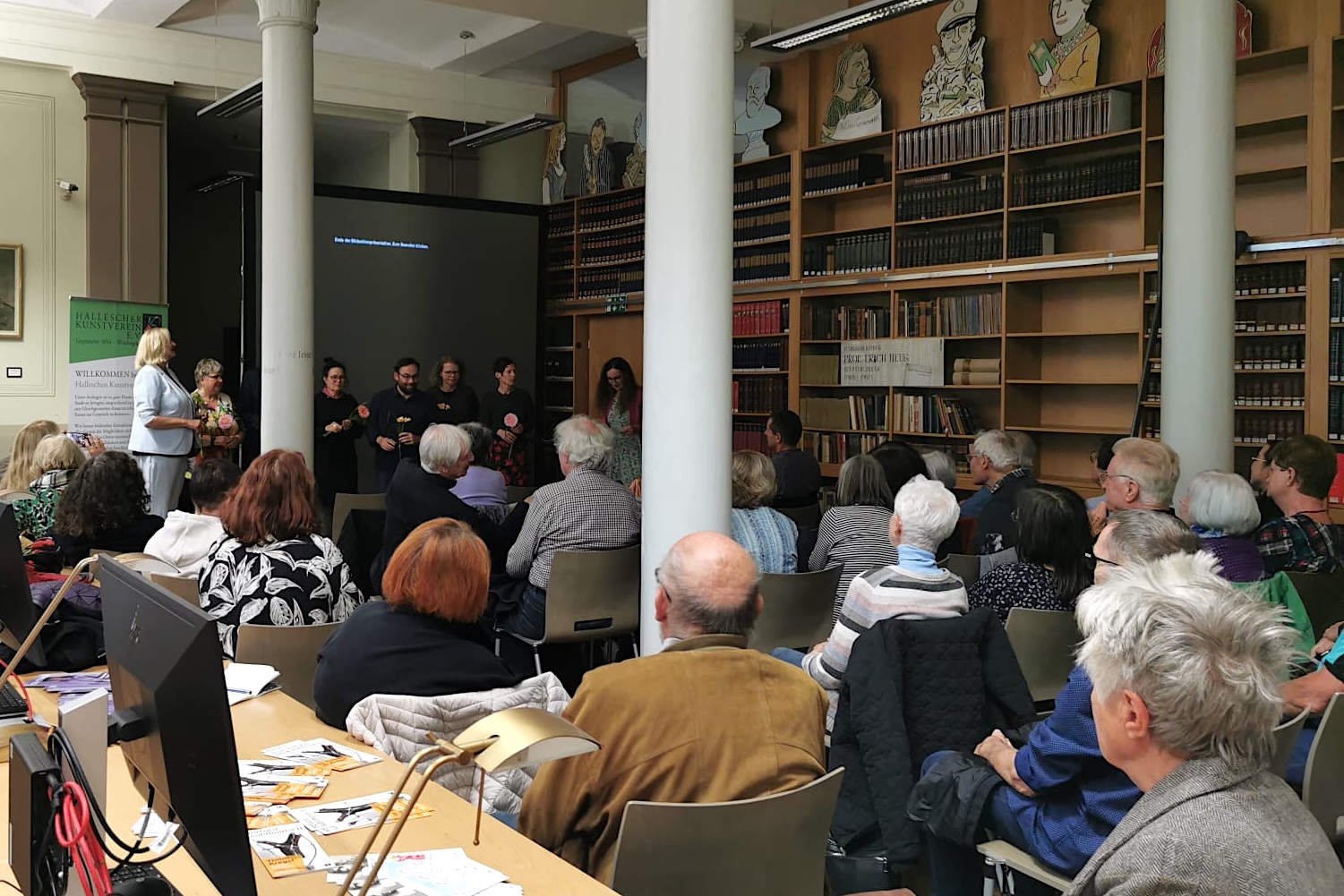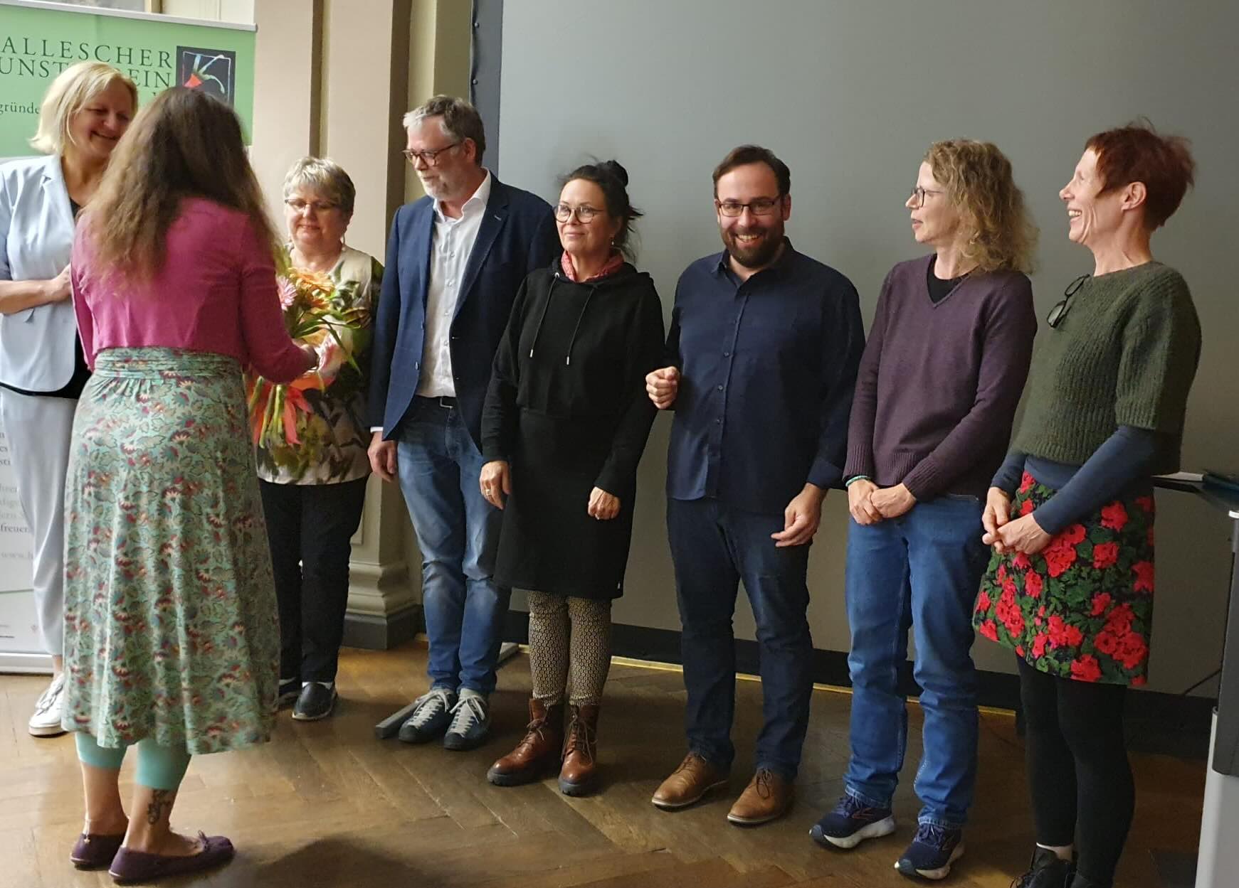 Am 24. September fand im Stadtarchiv die diesjährige Mitgliederversammlung des Kunstvereins statt. Mehr als 60 Mitglieder nahmen daran teil. Neben der Berichterstattung zum Jahr 2024 mit Entlastung des Vorstands fand turnusgemäß die Wahl des neuen Vorstandes statt. Dr. Ines Brock-Harder und Dr. Jeannette Drygalla haben sich nicht wieder zur Wahl gestellt. Beiden ist für ihr bisheriges Engagement gedankt worden, das sie auch nach ihrem Ausscheiben aus dem Vorstand fortsetzen wollen. Den übrigen Vorstandsmitgliedern Karola Waterstraat, Elke Busching, Ulf Dräger, Dr. Annetta Kirsch und John Palatini sprachen die Mitglieder auch für die nächsten drei Jahre das Vertrauen aus. Für die beiden vakant gewordenen Positionen wurden Beate Eismann und Manuela Winter in den Vorstand gewählt. Die Festlegung der eigentlichen Vorstandspositionen erfolgt gemäß Satzung erst bei der konstituierenden Sitzung des Vorstandes statt, die für den 6. Oktober 2025 geplant ist. Nach der Wahl gab die amtierende Vorsitzende, Karola Waterstraat, einen Ausblick auf die kommenden Vorhaben in diesem Jahr und in 2026. Im Anschluss an die Mitgliederversammlung sprach Matthias Kunkel in einem öffentlichen Vortrag über die vielfältige Kunst im öffentlichen Raum in Halle (Saale).