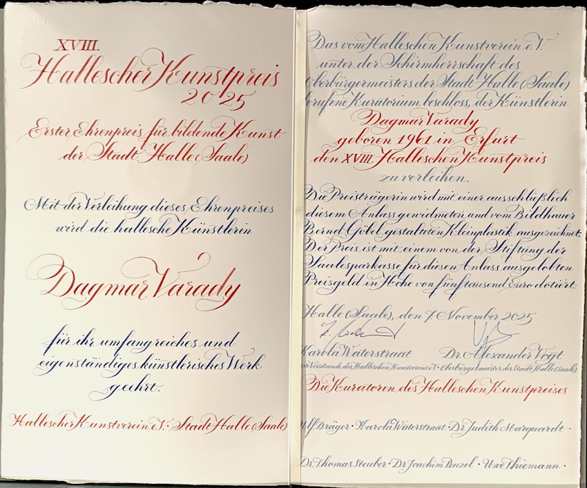 Urkunde zum Kunstpreis, gestaltet von Barbara Dimanski